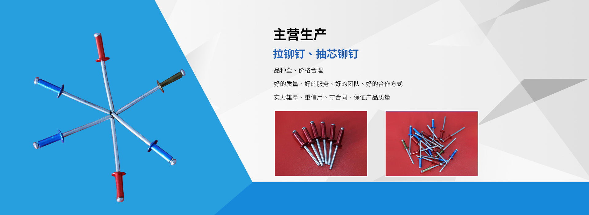臨沂市龍牌異型鉚釘廠是拉鉚釘、抽芯鉚釘等產(chǎn)品生產(chǎn)加工的個體經(jīng)營,公司總部設(shè)在臨沂市羅莊區(qū),臨沂市龍牌異型鉚釘廠具有完整、科學(xué)的質(zhì)量管理體,公司自成立以來,一直秉承“質(zhì)量為準(zhǔn),客戶至上”的經(jīng)營理念,以產(chǎn)品“品種豐富、價格合理”,在消費者當(dāng)中享有較高的身分,得到了廣大消費者的信賴與好平,公司并與多家零售商和代理商建立了長期穩(wěn)定的合作關(guān)系,公司實力雄厚,重信用、守合同、產(chǎn)品質(zhì)量放心,以多品種經(jīng)營特色和薄利多銷的原則,歡迎廣大消費者前來洽談業(yè)務(wù)!